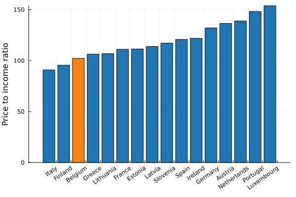 Given the high income tax, it is interesting to look at housing affordability. A natural metric is the average housing price to disposable income ratio.